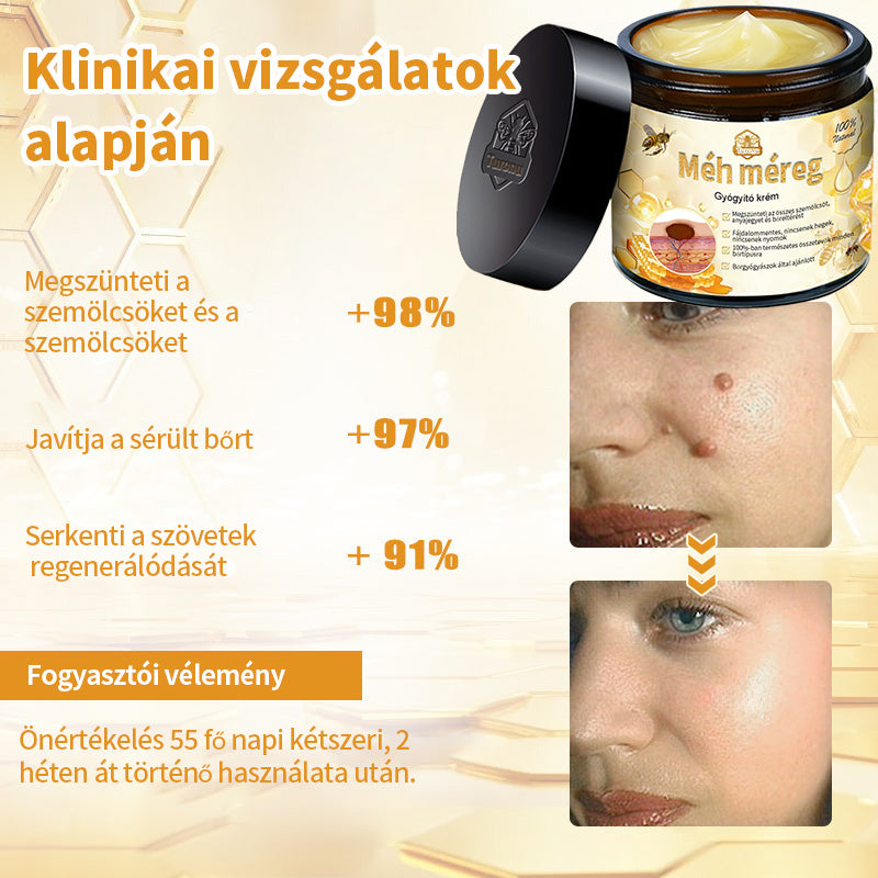 A mĂ©hmĂ©regben talĂĄlhatĂł aktĂv biolĂłgiai fehĂ©rjĂ©krĆl, az Ășgynevezett mĂ©hmĂ©reg peptidekrĆl kimutattĂĄk, hogy hatĂ©konyan gĂĄtoljĂĄk a keratinocitĂĄk szaporodĂĄsĂĄt a szemölcsökben, Ă©s gyorsan elpusztĂtjĂĄk a szemölcsökben kĂ©pzĆdött bĆrsejteket, amelyek fokozatosan megvĂĄltoztatjĂĄk a szĂnĂŒket, sötĂ©tednek, majd 1-2 hĂ©ten belĂŒl leesik. Legyen ez kulcsfontossĂĄgĂș kezelĂ©si lehetĆsĂ©g a szemölcsök teljes eltĂĄvolĂtĂĄsĂĄhoz. 2023. jĂșnius Több mint 1 hĂłnapos intenzĂv kutatĂĄs Ă©s kitermelĂ©s utĂĄn felfedeztem, hogy az Ășj-zĂ©landi mĂ©hek ĂĄltal termelt mĂ©hmĂ©reg gyorsan összeolvad az emberi bĆrszövettel. A folyamat aktivĂĄlĂĄsĂĄval Ă©s elĆsegĂtĂ©sĂ©vel hatĂ©konyan gĂĄtolja a keratinocitĂĄk szaporodĂĄsĂĄt a szemölcsön belĂŒl, Ă©s gyorsan elpusztĂtja a szemölcsön belĂŒl mĂĄr kialakult bĆrsejteket.