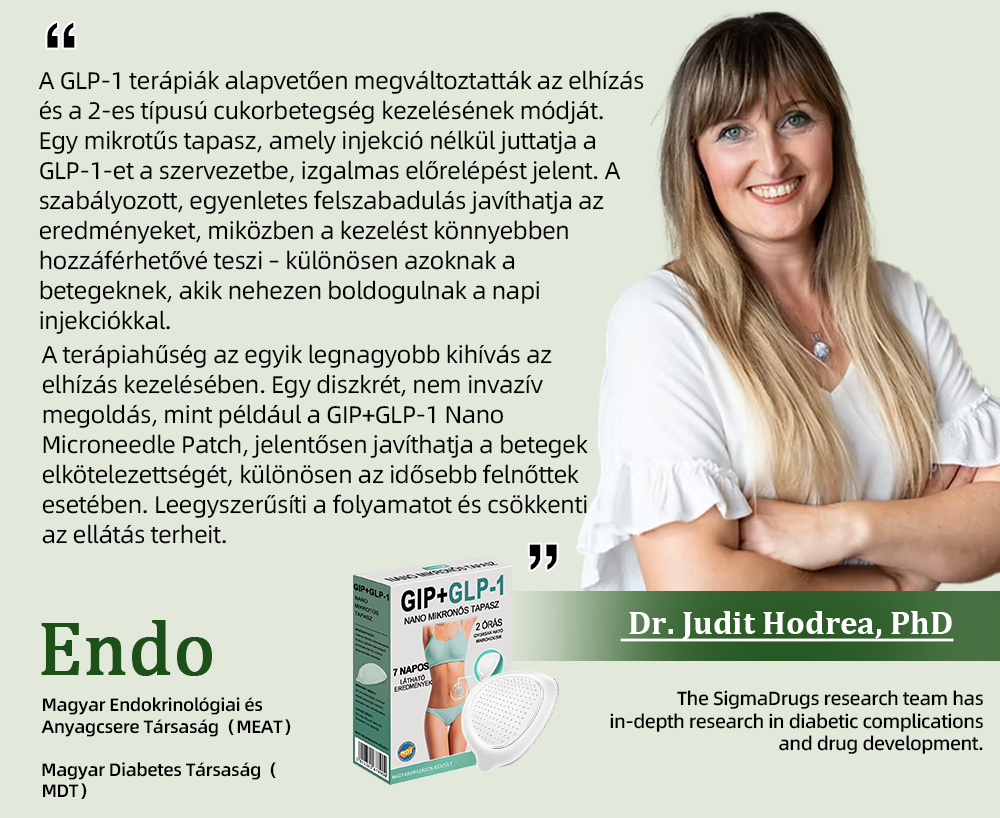 "Elhízásban és cukorbetegségben is szenvedek, és SMGT-GLP-1 kezelést kapok a kórházban. Talán azon töprenghet, miért váltottam át hirtelen a Lenreey® Microneedle Patch használatára. A GLP-1, más néven szemaglutid, határozottan nagyszerű kezelés. Nagyon gyorsan működik – az injekció beadása után rövid idővel leesett az étvágyam, de gyorsan le is fogyott a vércukorszintem. tough to break old habits. On my scheduled injection days, I’d come up with all sorts of excuses to skip, which led to failed treatments. The cost, hunger, time conflicts, or even something as simple as it raining outside would keep me from going. But the Microneedle Patch is perfect for someone like me who struggles with inertia. I can use it easily at home, and the effects last, keeping my appetite in check. What’s even better Az, hogy ez valóban megfizethető, és bárki használhatja a GIP+GLP-1-et a fogyás és a vércukorszint kordában tartására!"
