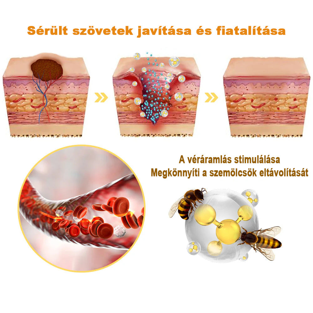 A mĂ©hmĂ©reg szĂĄmos bioaktĂv vegyĂŒletet tartalmaz, köztĂŒk a melittint is, apamin Ă©s adolapin, amelyekrĆl tudomĂĄnyosan bizonyĂtottĂĄk, hogy hatĂ©konyan kezeli a bĆrön lĂ©vĆ foltokat vagy szemölcsöket. A foszfolipĂĄz A2 enzimarzenĂĄlja közĂŒl kiemelkedik azzal a kĂ©pessĂ©gĂ©vel, hogy kĂ©pes lebontani a kĂłros szöveteket, leegyszerƱsĂti a bĆrcĂmkĂ©k vagy szemölcsök eltĂĄvolĂtĂĄsĂĄnak folyamatĂĄt.