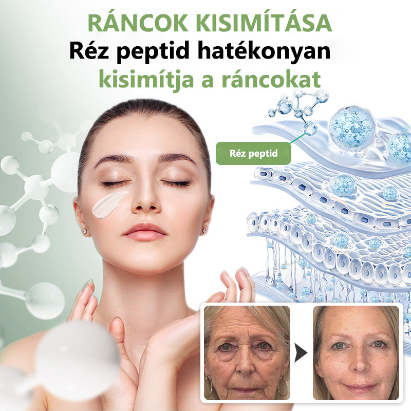 Rézpeptid: A rézpeptid egy erős öregedésgátló összetevő, amely elősegíti a kollagén és az elasztin szintézisét. Segít javítani a bőr feszességét és rugalmasságát, támogatja a sejtek regenerálódását, csökkenti a ráncok és finom vonalak megjelenését, valamint véd a környezeti ártalmaktól.