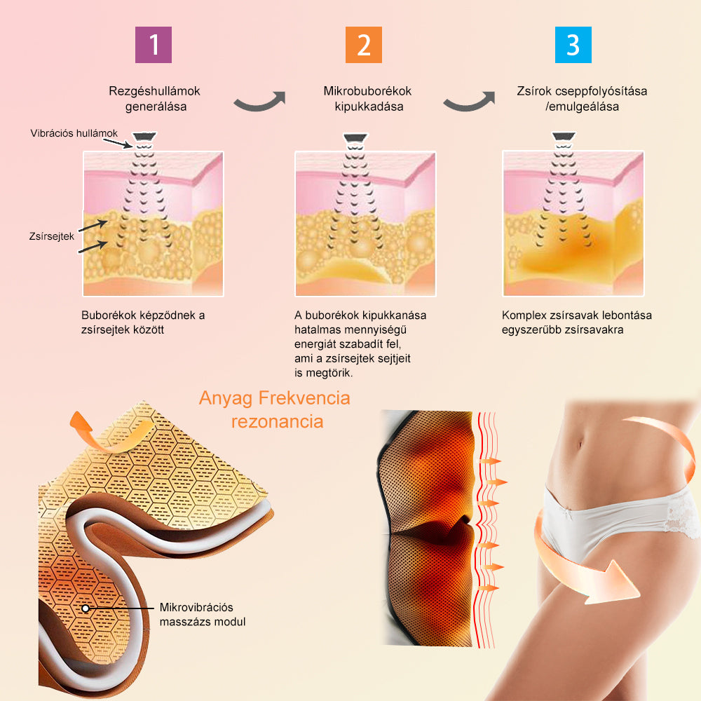 A derĂ©köv mikrovibrĂĄciĂłs masszĂĄzsszövettel van bĂ©lelve, alacsony frekvenciĂĄjĂș vibrĂĄciĂłs technolĂłgiĂĄt alkalmazva. A finom testmozgĂĄsok kiaknĂĄzĂĄsĂĄval ezek a rezgĂ©sek a rezgĂ©serĆsĂtĆ modulra ĂĄtvitelre kerĂŒlnek, Ăgy az egĂ©sz szövet meghatĂĄrozott frekvenciĂĄkon rezonĂĄl. Ez bizonyos izomcsoportokat cĂ©loz meg vibrĂĄciĂłs stimulĂĄciĂł cĂ©ljĂĄbĂłl, utĂĄnozva a kĂ©zmasszĂĄzs hatĂĄsĂĄt. A rezgĂ©sek elĆsegĂtik a zsĂrsejtcsoportok lebontĂĄsĂĄt, aktivĂĄljĂĄk a mĂ©ly zsĂranyagcserĂ©t Ă©s elĆsegĂtik a nyirokrendszer mĂ©regtelenĂtĂ©sĂ©t.