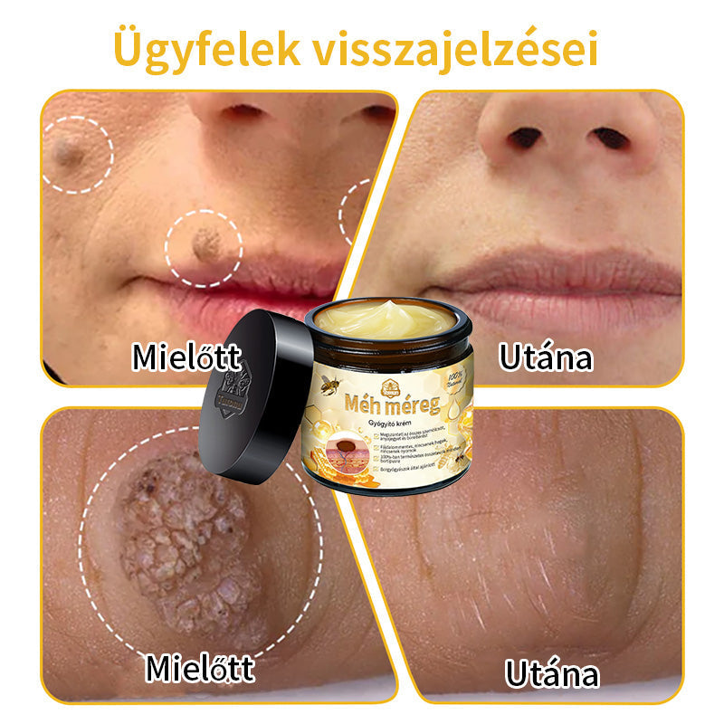 MĂ©hmĂ©reg:  A mĂ©hmĂ©reg az Ășj-zĂ©landi mĂ©hek mĂ©rge. Ez egy mĂłdszer arra, hogy a mĂ©heket Ă©teres Ă©rzĂ©stelenĂtĂ©ssel stimulĂĄlja a mĂ©hmĂ©reg kivĂĄlasztĂĄsĂĄra. Ez a termĂ©szetes anyag nem Ă©letveszĂ©lyes, Ă©s elismert potenciĂĄlis elĆnyeirĆl van szĂł a kĂŒlönbözĆ szemölcsök Ă©s kĂŒlönfĂ©le bĆrbetegsĂ©gek kezelĂ©sĂ©ben. SzabĂĄlyozhatja az immunvĂĄlaszt Ă©s gĂĄtolja a gyulladĂĄst elĆsegĂtĆ citokineket. Ugyanakkor a mĂ©hmĂ©reg egy viszonylag biztonsĂĄgos immunmodulĂĄtor vĂrusellenes tulajdonsĂĄgokkal. EzĂ©rt hatĂ©konyan kĂ©pes kezelni a vĂrusos fertĆzĆ szemölcsöket is, Ă©s hatĂ©konyan elpusztĂtja a szemölcsök bĆrsejtjeit, lehetĆvĂ© tĂ©ve szĂĄmukra, hogy fokozatosan megvĂĄltoztatja a szĂnĂ©t, elsötĂ©tĂŒl, majd 1-2 hĂ©t alatt leesik. A csapatunk ĂĄltal felfedezett melittin erĆs gyulladĂĄscsökkentĆ tulajdonsĂĄgokkal is rendelkezik, Ă©s segĂt csökkenteni a szemölcsökkel kapcsolatos gyulladĂĄsokat.