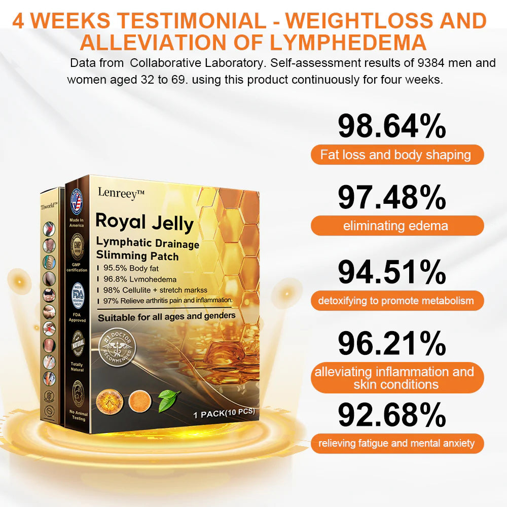 "This product is truly remarkable. I wanted to share my recent experience. I've been searching for something to help shed the extra pounds and make me feel at ease. After a long period of trial and exploration, I finally found a product that really works - Lenreeyℱ Royal Jelly Lymphatic Drainage Slimming Patch, and followed the recommended daily usage. After the first use, I immediately felt my digestive system running smoother. It's been nothing short of a miracle... In just one month, I've lost nearly 50 pounds. I wanted to share this story with everyone because I know there may be others going through what I've been experiencing. Trying it spared me a lot of pain and agony. Most importantly, it's convenient and affordable! I can slap it on anytime."